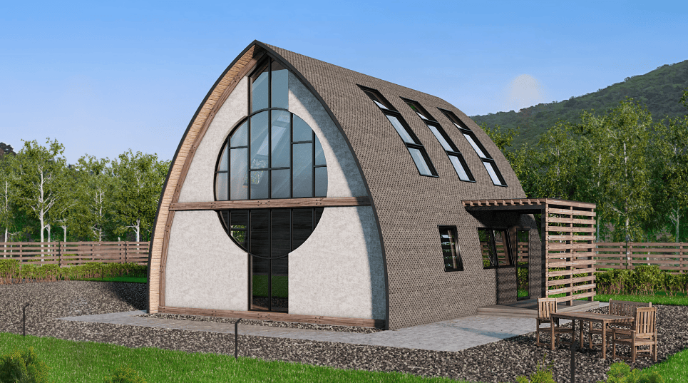 Скаты кровли выполняют функцию боковых стен, цена строительства ниже, чем обычного каркасника. Каркас предполагает качественное утепление в 200мм