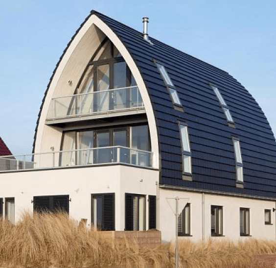 Крыша имеет два крутых ската. Она придает дому выразительность и способствует прекрасной вентиляции.